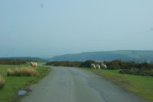 08.38 am Heading west over the "Black Moutains" along these narrow roadways with no fences but cattle grids which would be interesting to travel in winter (notice no trees).