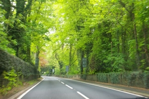 13.41 Castles and churches sticking out at you from all sides down the road plus more of these appealing wooded roads.