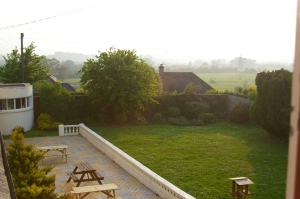 15.57 Soon in Exeter down south and find our YHA, booked in and looking out the back window across the fields but we are in the middle of a big city.