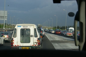 05.58 am Rise and shine, looking down the motorway to the airport which was empty intill we neared the airport and then it was a bit slow but we arrived there ok.