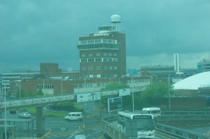 09.05 Then back on the endless travelator, to get our baggage and our first view of england from the lounge window.